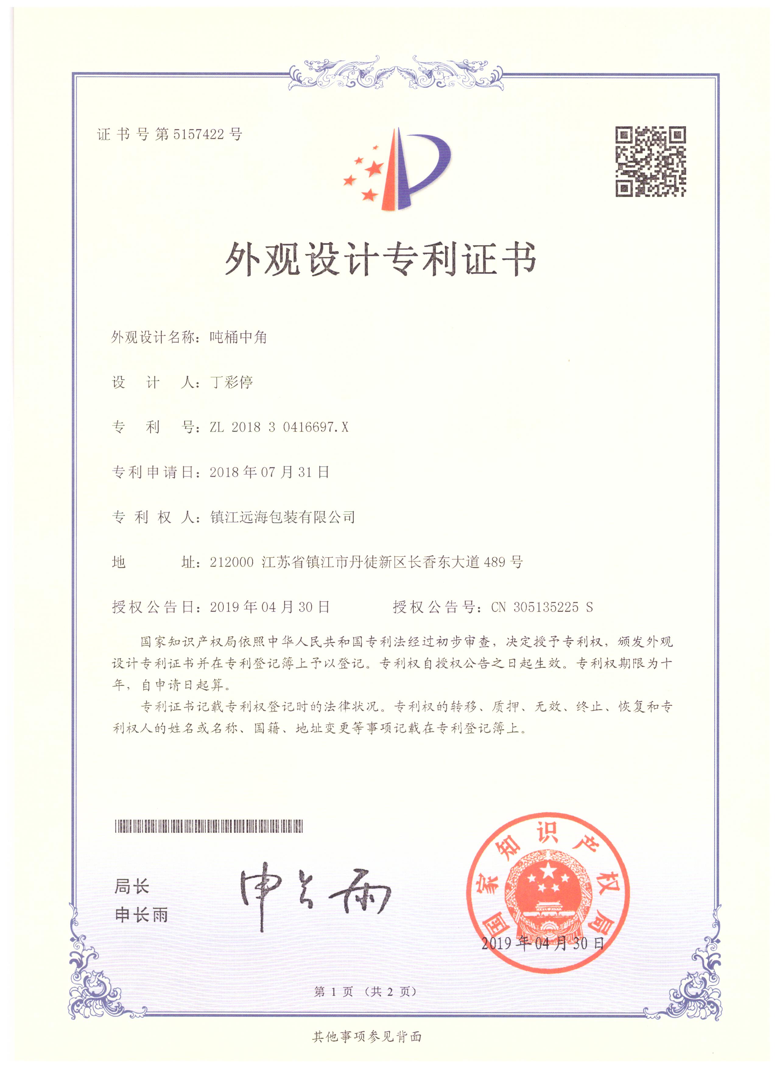 鎮江遠海包裝有限公司成立于2014年8月,是一家專注于生產IBC噸桶及零配件的企業,主要產品有各種型號的底板、橫梁、底角、標牌、鍍鋅焊管等。公司擁有相關產品的外觀型和實用型8項專利。